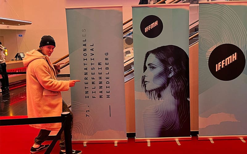 Cinemaxx Mannheim, Donnerstag, der 17. November 2022. Betritt man die Eingangshalle des Kinos springt einen ein roter Teppich direkt ins Auge. Menschen die locker, fröhlich lachend miteinander quatschen, während sie mit ihrem Sekt anstoßen. Und mitten drin, überall die IFFMH Banner.
